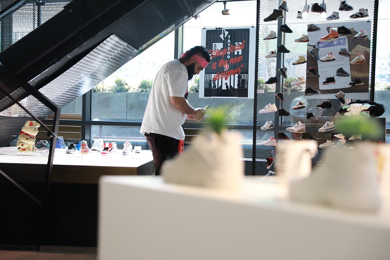 With the help of storeowner, @Jaron we bedazzled our space with a sampling of his rarest dead-stock sneaks and custom merch, plus a wall display of tinier kicks, on loan from Jaron’s 4-year-old, Jaxon.
